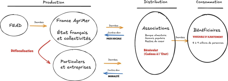 [6] Inspiré par le circuit du don indirect de Bénédicte Bonzi dans son ouvrage : La France qui a faim, Seuil, 2023.